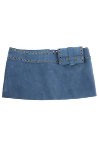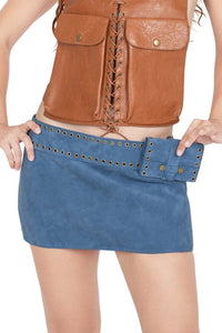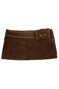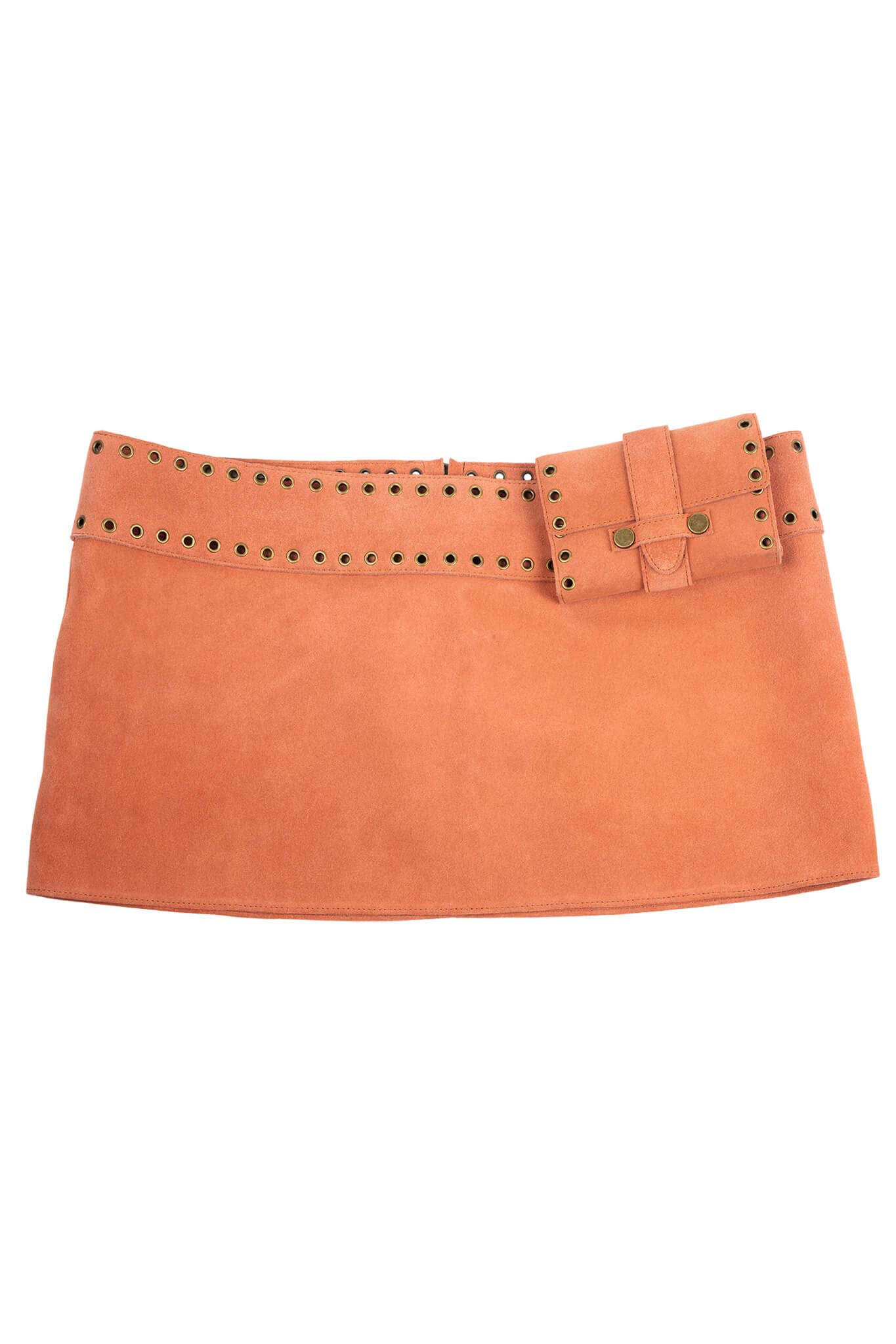 Low-rise mini skirt with attached wallet