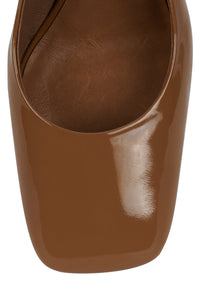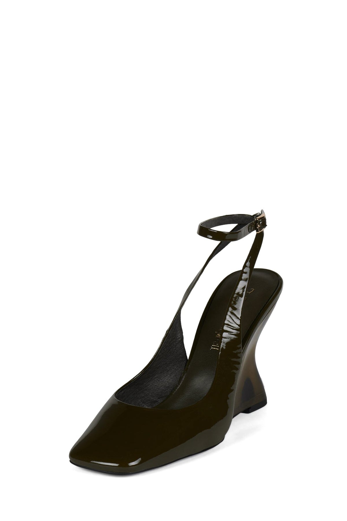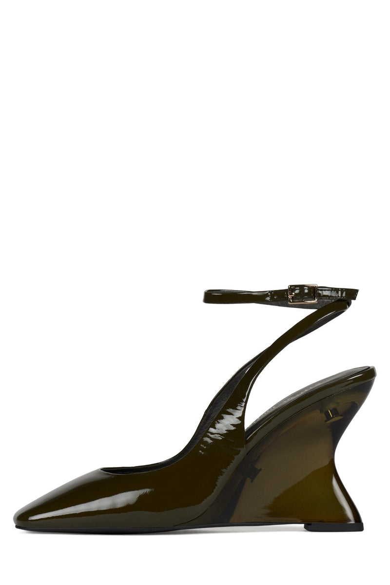 Lucite wedge ankle strap pump
