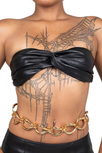 Twist-front strapless bra top. Accessories sold separately.