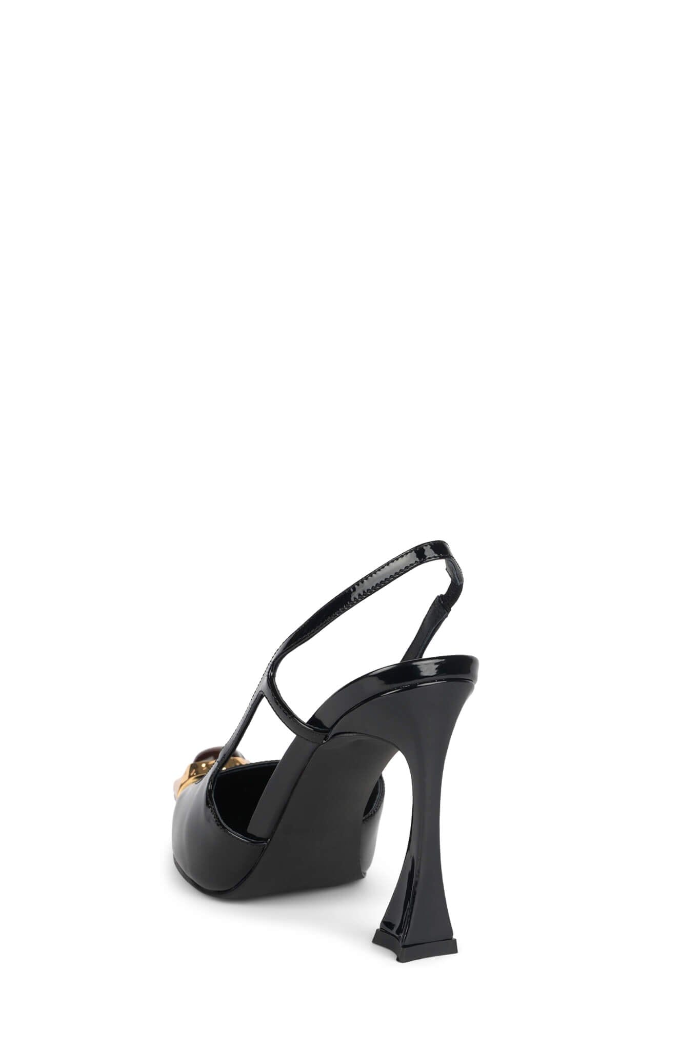 Slingback pump with metal toe-cap and jeweled ornament